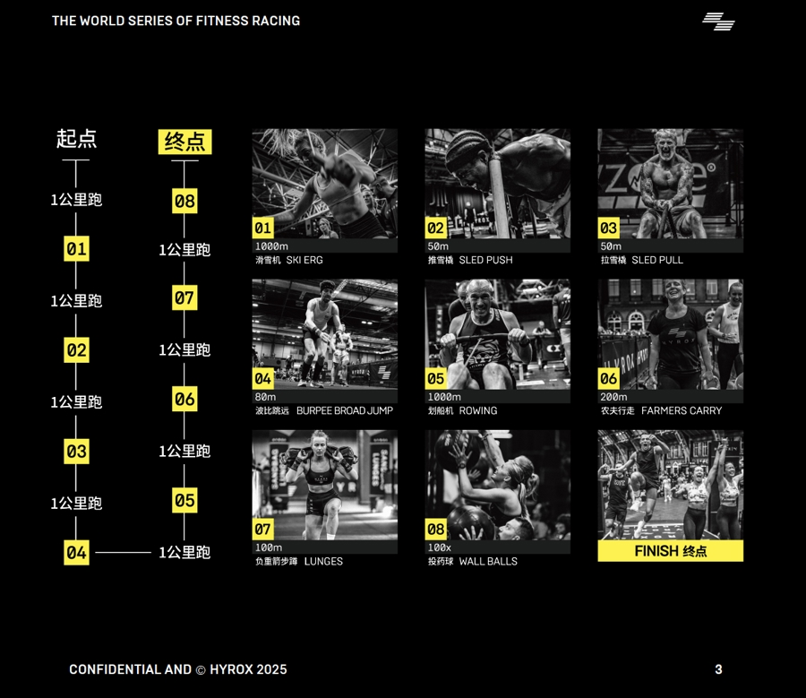 HYROX所提供的,并非一项新的训练方法,而是一套可以被资本、品牌和健身机构共同使用的赛事IP模型:标准化赛制、统一动作、可复制城市站点,以及稳定的参赛人群画像。
